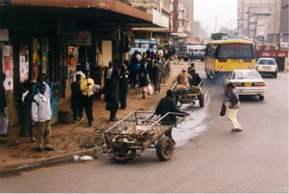 13.3.2002 Odlet z Prahy do Nairobi Gucci nás veze do Prahy. Letos ale nejede, protože má doma problémy. Je to škoda. Odlet na pohodu. V Zurichu čekáme asi 3 hod. na letadlo do Nairobi. Jsme v transferu v restauraci. Utrácíme za pivo skoro všechny Eura. Je to tady drahý jako prase. Až když hlásí v rozhlase naše jména, makáme na letadlo. Stíháme ho, takže letíme. 14.3.Nairobi Ráno v 9 hod. místního času jsme na letišti v Nairobi. Ještě jdeme na letišti na WC, využíváme asi poslední slušnej hajzl. Před letištěm je banda naháněčů a taxikářů. Kašleme na ně a bereme městskej autobus, kterej staví nedaleko,za pár šilinků do města. Jedeme s místňákama do centra. Už v autobuse se na nás nalepil nějakej negr-nahaněč. Vystupujeme v centru. Nahaněč nám chce ukázat cestovku. Tak jdeme s ním do nějaký budovy. Je to v 5 patře, dveře jsou zamřížovaný. Ty nám otevírá masaj v těch jejich hadrech a rychle za náma zamyká. Cestovka nabízí samý nesmysly. Mizíme pryč. Jdeme do města na pivo. V Nairobi nic není. Je to hnusný velkoměsto. Tak se domlouváme, že pojedeme ještě dneska do Mombasy na koupačku. V hospodě se na nás hned přilepily kurvy. Dáváme piva, nahaněč nám radí,ať se jedeme podívat na ostrov Mamburi do Lamu, což je městečko na ostrově u Somálských hranic.To může bejt zajímavý. Kurvy čumí a něco mumlají, tak je fotím. Potom jdeme na autobus.